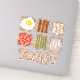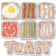 Deliciously fun stickers for lovers of breakfasts, brunches, and food! Original illustration of six pieces of toast with jam, or jelly, asparagus, peanut butter, tomato slices, a fried egg, mushrooms, sardines, baked beans, and sausages. Delicious choices for a filling, yummy breakfast or brunch. Wonderful for party invites or for lovers of stationery and bullet journals.
