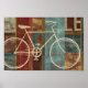 © Michael Mullan / Wild Apple. An image of a white bicycle against a colored background. The background is a collage of squares in different colors and shades.