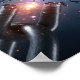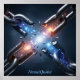 The breaking point reveals an explosion of bright blue and fiery orange energy, glowing with raw force and futuristic intensity. The interplay of light and shadow creates a bold, cinematic effect, drawing the viewer’s attention to the central X-shaped fracture.