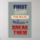 “First learn the rules, then break them”. See my store for more items with this design.