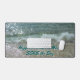 Ocean waves breaking along a sandy shoreline on this beautiful coastal photographic desk mat. Happiness Comes in Waves SEAS the Day! The text may be personalized with your own. This image is original beach photography by JLW_PHOTOGRAPHY.