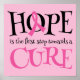 Hope is the first step toward a cure for Breast Cancer. Beautiful pink ribbon awareness and support poster.