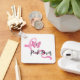 This metal keychain is shown in a pink ribbon pink power print.