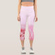 Leggings with pink breast cancer ribbon on the leg and pink rose at the bottom.