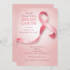 A pink and white invitation with a furled ribbon in the breast cancer symbol. <a href='http://www.freepik.com/free-vector/pink-ribbon-background-of-breast-cancer_895782.htm'>Designed by Freepik</a>. <br/><br/>The card is easy to customize with your wording, font, font color, paper shape options and choice of six paper types.<br/><br/>Not exactly what you're looking for? All our products can be custom designed to meet your needs at no extra charge.<br/><br/>Simply contact us at heartfelthelper@gmail.com<br/><br/>Coordinating products available: Just ask us!