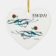 Two matched breaststroke swimmers on a heart ornament. This is an abstract line design with color in the shapes. A fun gift for that breaststroke swimmer you know and love! Art by D. Milan Brudvig.
