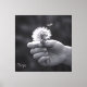 A gentle hand holds a dandelion ready to scatter in the wind. In black and white, the image captures the purity of a moment when a wish is released into the unknown — simple, fragile, and full of hope.
