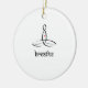 Lightweight, smooth, pure white ornament with nice sheen. Perfect size to be seen from across the room ... and to attract closer inspection! Price was great for ordering enough for the whole family! Clear, bold black design just as requested. Matches the order exactly. Just so nice!