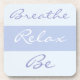 A gentle reminder just to let go off the stresses of life, relax and be in the present moment. This slogan says "Breathe, Relax, Be" to invite you to be mindful. The design is in gentle shades of blue.