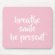 Breathe Smile Be Present Pink Affirmation Quote Mouse Pad