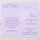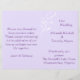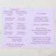 The Breathless Wedding Collection offers a subtle yet modern design to your wedding program. Lightly lavendar wedding programs feature a light lavendar background with a swirl of white branch like designs in the top left corner of the front cover. Use the premade template to customize your programs adding all the details of your planned occasion. Shown here with heavy text weight paper type comparable to cardstock, you may also choose other paper and font types and/or colors from the "customize it" feature. Programs are designed on a 8.5 x 11 inch sheet, designed to be scored folded along the center line into a card style program