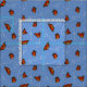This colorful butterfly pattern fabric features Monarch butterflies and their bouncy, twirly flight trails patterned on a customizable blue background - by katz_d_zynes