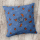 This butterfly pattern monogrammed throw pillow features colorful Monarch butterflies and their bouncy, twirly flight trails patterned on a customizable blue background - by katz_d_zynes