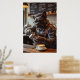 This energetic French Bulldog poster turns your wall into a hilarious coffee scene. The pup, dressed in a green and white flannel shirt with suspenders and glasses, is hard at work frothing milk and pouring a latte masterpiece. His bug-eyed focus shows he’s deep in the grind. “Bark Roast” and other punny drinks fill the chalkboard menu. Great for anyone who needs a boost of humor with their caffeine fix.