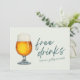 The front of our save the date boldly declares "Free Drinks", instantly signaling to your guests that a good time awaits. On the back, add your photo and wedding details.