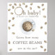 Watercolor coffee beans and cup of coffee and beans pattern. Coffee brewing baby shower. Coffee themed baby shower with. Text with coffee ring and with coffee beans and cup of coffee.