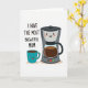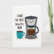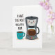 This card features a digital illustration of two friendly, human-like drink containers sharing a cozy, affectionate mood ❤️. A charcoal and soft-grey coffee maker stands beside a teal mug, and both are filled with dark brown coffee that hints at a shared morning routine. Each one has a simple smiling face with rosy cheeks and wide eyes, and their close side-by-side placement feels like a warm little partnership. The background is plain white, keeping the focus on the pair and their gentle, companionable expressions. In the upper left, the message “I HAVE THE MOST BREWTIFUL MUM” appears in thick, casual handwritten lettering in dark ink, like a note added just for her. Smooth shapes and even lighting keep the look tidy, while the dark coffee contrasts nicely with the teal mug and muted machine body 🌼. Soft peach-toned shadows sit beneath both items on the white surface, grounding them in place. The coffee maker’s clear carafe shows the dark liquid inside, and the teal mug’s matching fill sits just below its rim.