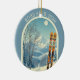 Ornament from a wonderful skiing holiday in the beautiful mountains of Brian Head, Utah. This Ornament features an arch with a stunning blue-grey mountain landscape and retro ski boards in an orange tribal pattern in the foreground. The rest is in a lovely light blue tone with the location lettering in a modern font. The design is a lovely combination of retro and modern, and I hope you enjoy it!