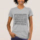 My overall review is that the T-shirt is nice, it fits true to size however the font is significantly smaller than advertised and you can't read it. The printing is unreadable and there is a strain to read it. It does not look like the advertised product. Maybe the shirt color is darker or a larger more visible font should have been used. Photos with and without flash and font is barely legible.