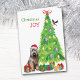 Briard Dog, Bird and Christmas Tree Holiday Card