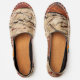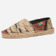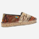 brick red and tan abstract with black liner espadrilles