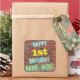 This fun birthday-themed sticker design features a message like "HAPPY 1st BIRTHDAY, NAME-HERE!", where the name can be personalized. The background features a representation of a brick wall consisting of some reddish-brown colored bricks. The customizable message text features colors like blue, yellow, and green, and it has an appearance inspired by that of painted graffiti. Stickers like these could perhaps be given as a birthday gift, or perhaps be used as decorations at a birthday party for somebody who is celebrating their first birthday. [~Z0000273]
