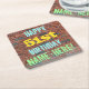 This fun birthday-themed coaster design features a message like "HAPPY 51st BIRTHDAY, NAME-HERE!", where the name can be personalized. The background features a representation of a brick wall consisting of some reddish-brown colored bricks. The customizable message text features colors like blue, yellow, and green, and it has an appearance inspired by that of painted graffiti. Coasters like these might be useful as practical decorations at a birthday party for somebody who is celebrating their fifty first birthday. [~Z0000288]
