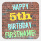 Brick Wall Graffiti Inspired 5th Birthday + Name Square Sticker