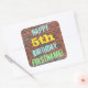 This fun birthday-themed sticker design features a message like "HAPPY 5th BIRTHDAY, FIRSTNAME!", where the name can be personalized. The background features a representation of a brick wall consisting of some reddish-brown colored bricks. The customizable message text features colors like blue, yellow, and green, and it has an appearance inspired by that of painted graffiti. Stickers like these could perhaps be given as a birthday gift, or perhaps be used as decorations at a birthday party for somebody who is celebrating their fifth birthday. [~Z0000273]
