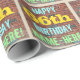 This fun birthday-themed wrapping paper design features a message like "HAPPY 66th BIRTHDAY, NAME-HERE!", where the name can be personalized. The background features a representation of a brick wall consisting of some reddish-brown colored bricks. The customizable message text features colors like blue, yellow, and green, and it has an appearance inspired by that of painted graffiti. Wrapping paper like this could perhaps be used when wrapping birthday gifts being given to somebody who is celebrating their sixty sixth birthday. [~Z0000274]