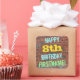 This fun birthday-themed sticker design features a message like "HAPPY 8th BIRTHDAY, FIRSTNAME!", where the name can be personalized. The background features a representation of a brick wall consisting of some reddish-brown colored bricks. The customizable message text features colors like blue, yellow, and green, and it has an appearance inspired by that of painted graffiti. Stickers like these could perhaps be given as a birthday gift, or perhaps be used as decorations at a birthday party for somebody who is celebrating their eighth birthday. [~Z0000273]