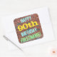 This fun birthday-themed sticker design features a message like "HAPPY 90th BIRTHDAY, FIRSTNAME!", where the name can be personalized. The background features a representation of a brick wall consisting of some reddish-brown colored bricks. The customizable message text features colors like blue, yellow, and green, and it has an appearance inspired by that of painted graffiti. Stickers like these could perhaps be given as a birthday gift, or perhaps be used as decorations at a birthday party for somebody who is celebrating their ninetieth birthday. [~Z0000273]