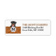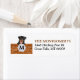 The left side of these return address labels feature a watercolor image of a Rottweiler Dog peeking over a red and brown brick wall. The Rottie holds a sign with your monogram on it. Your custom text is in brown and dark gray at the right.