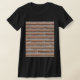 My overall review is that the T-shirt is nice, it fits true to size however the font is significantly smaller than advertised and you can't read it. The printing is unreadable and there is a strain to read it. It does not look like the advertised product. Maybe the shirt color is darker or a larger more visible font should have been used. Photos with and without flash and font is barely legible.