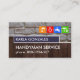 Cover features a brick wall with a wood panel layer. Over at the top is a colorful handyman tools icon logo you can use. This is followed by your prestigious name, the business name and the contact details.