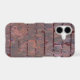 This is an interesting and unique case, featuring an image of an old violet gray brick wall. The wall has multiple images of faint coral pink valentine hearts in various places and positions, looking like graffiti. At the bottom in coral pink is your name or other customized text.