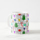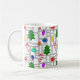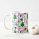 This mug has a larger geometric design of Christmas trees, candy canes, lights, and ornaments with grey rectangle outlines on top. Like the design but want a different color? Message me.