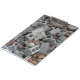This clipboard design features a photo of demolition rubble that contains bricks, concrete blocks, and other building wreckage debris.
