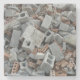 This coaster design features a photo of demolition rubble that contains bricks, concrete blocks, and other building wreckage debris.