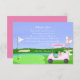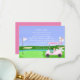This golf-themed bridal shower thank you card is crafted with the bride-to-be at the heart of its design. It features a heart-shaped putting green and a flag pin fluttering in the breeze, emblazoned with the words "Bride to Be." The golf cart is festively adorned with champagne, gifts, a tiara, and an intricately illustrated bridal shower cake. A bridal veil elegantly drapes from the golf bag, adding a charming touch. Designed by Daphsam, this one-of-a-kind thank you card comes with an easy-to-use template to ensure stress-free planning.