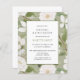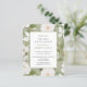 Bridal Shower luncheon invitations are bursting with elegant botanical pattern of white flowers and leaves in watercolor palette of ivory, cream sage and moss green on a chic green background