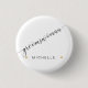 "Bridal Party Groomswoman Script Simple Modern Gold Heart button." Simple. Minimalistic. Ideal for the modern wedding Bridal Party. "Groomswoman" in script calligraphy, with her name personalized and highlighted with tiny gold glitter hearts. Copyright.