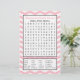 Looking for a bridal word search for your bridal shower party? This word search game is the perfect find. The design features 20 wedding related words to search for on a fun pink and white chevron zigzag background. The reverse side of the word search game even has the pink and white chevron pattern. Most importantly, you can customize the design with the name of your bride! A great way to add a personal touch to your bridal shower or wedding shower word search game puzzle. Copyright henishouseofpaper