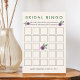 The classic bridal shower bingo game on a pretty card featuring a purple watercolor pansy flower and green botanical accents. Coordinates with our Purple Pansy collection of bridal shower invitations and accessories.