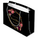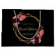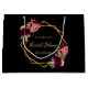 A trendy and stylish Bohemian boho style for a bridal shower. Decorated with watercolored roses in burgundy and pink. Elegant black colored background. A faux gold geometric frame. Templates for the bride's name and a date. With the text: Bridal Shower written with a hand lettered style script, faux gold colored letters.