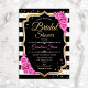 Bridal Shower - Black White Stripes and Pink Roses Invitation