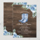 Plain white envelopes are included with paper invitations and will come to fit the invitation size you select. If you don’t need the envelopes, you may choose to not receive them by selecting the dropdown below "Envelopes" and choosing "None." If you’d like to have a design on your envelopes, you can browse all of these available envelopes to find the design that complements your Bridal Shower Blue Cowgirl Boots Floral Rustic Invitation.