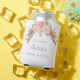 A cooler for bridal shower. A white background. Decorated with pampas grass and blush pink and rose gold florals. Personalize and add a date, name. The name is written in dark rose gold color with a modern hand lettered style script.