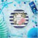 Trendy navy and white with a tiny faux gold glitter band with pink color palette mixes dramatically with the modern, wide striped background. Easy to mix and match for a dramatic and elegant bridal shower theme! The bride's name is personalized using the template field and there are coordinating products to allow you to easily and inexpensively throw a memorable shower!