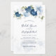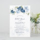 Customize this bridal shower budget invitation card by clicking the "Personalize" button above. The card features a modern elegant chic dusty blue flowers with white, light blue, and olive green bloom.